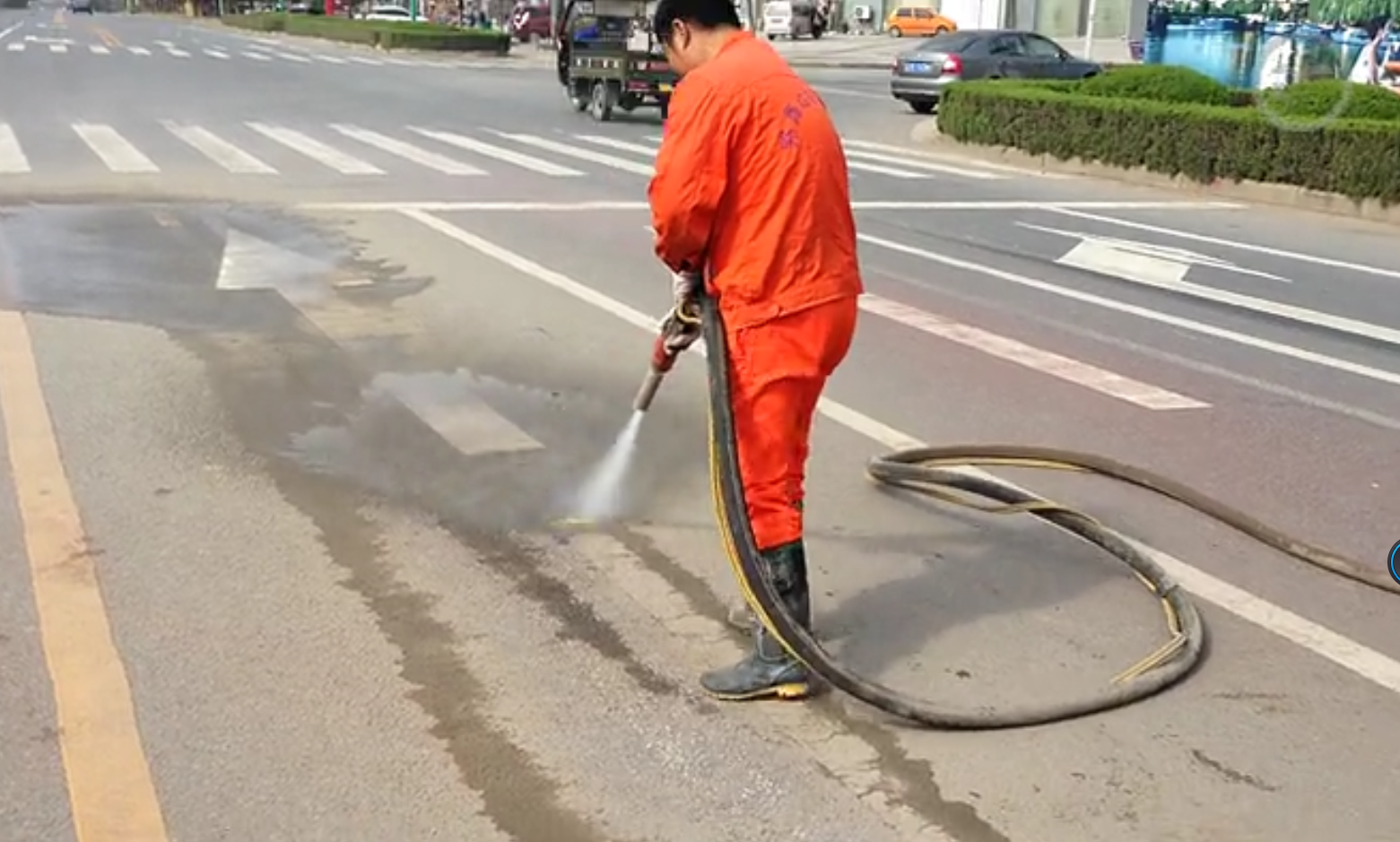 由于交通管理方案改變等原因,常需要將原有的道路標線清除掉,清除道路標線的方法有很多種,但有一種是對路面無損壞,標線清除干凈,環(huán)保無塵、效率高,那就是高壓水射流清除法。高壓水射流清除法——利用高壓清洗機的增壓系統(tǒng)使水由噴頭射出,這種水射流具有極強的沖擊力和切削力,可直接深入到瀝青孔隙中對標線漆進行清除。被清洗過的路面不但沒有任何標線漆的殘留,同時也不會有任何損害,整個路面還會變得非常的干凈。