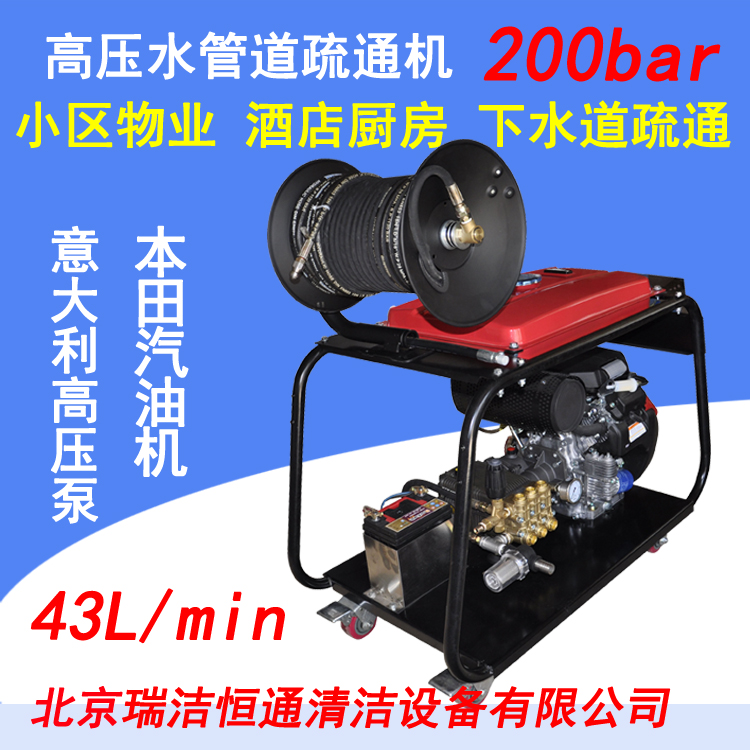適用對象:小區(qū)物業(yè)、市政、城管、環(huán)衛(wèi)部門清洗、疏通市政管道。根據(jù)疏通清洗的管道直徑的大小,選擇用多大動力的高壓疏通機,北京瑞潔恒通清潔設(shè)備有限公司是專業(yè)生產(chǎn)研發(fā)定制高壓清洗機及高壓疏通機的企業(yè),我司生產(chǎn)的高壓疏通機型號有RJHT-300、RJHT-500、RJHT-1000,分別可以疏通直徑300mm、500mm、1000mm以下的管道,300型和500型有電動機和汽油機驅(qū)動的,1000型的是柴油機驅(qū)動的。