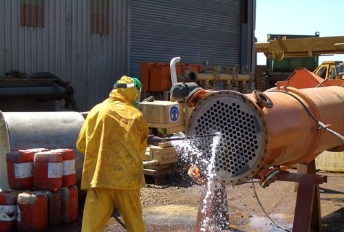 所以必須定期采用高壓清洗機(jī)的水水射流技術(shù)清洗換熱器,瑞潔恒通推薦使用RJHT-5022高壓清洗機(jī)對換熱器進(jìn)行定期清洗,如下圖所示: