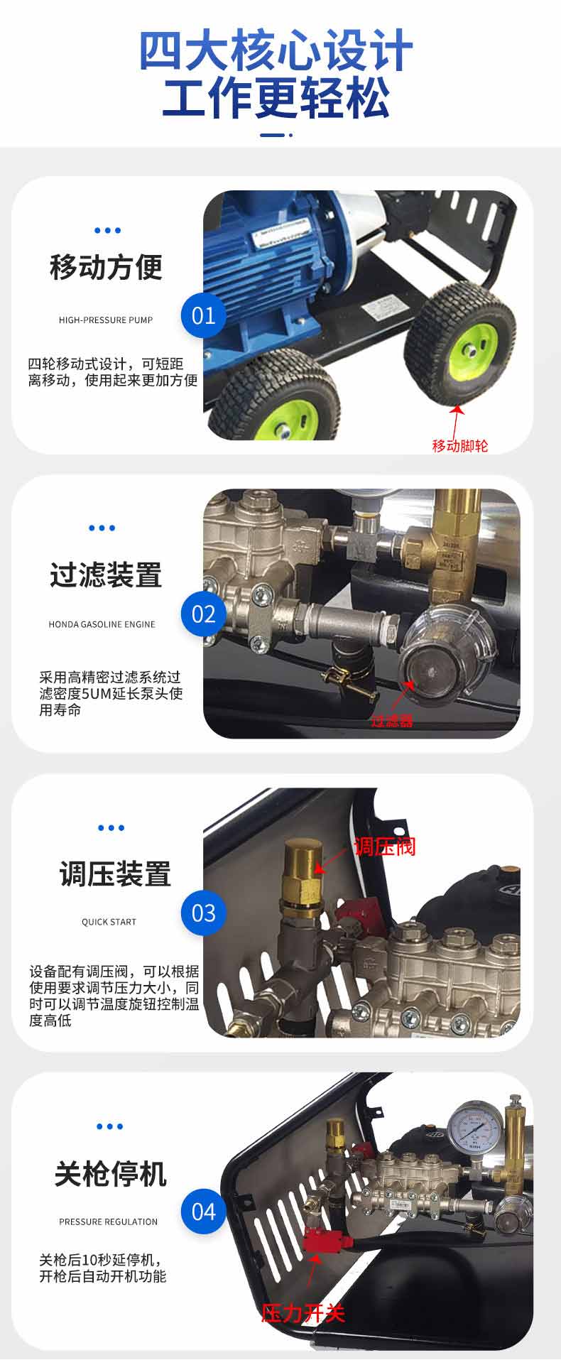 RJHT-2515型高溫高壓清洗機(jī),采用意大利進(jìn)口高壓泵,壓力調(diào)節(jié)和安全控制閥,熱敏閥等多種安全防護(hù)裝置,具有安全性高,使用操作穩(wěn)定等優(yōu)點(diǎn)。