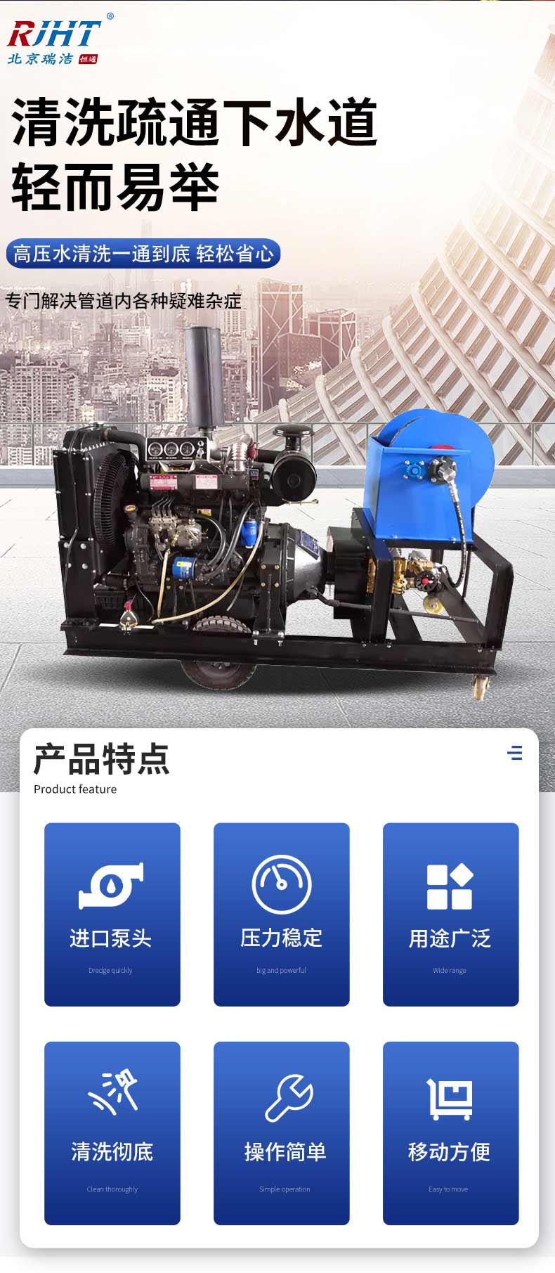 1000型 大流量管道清洗機(jī)- ?型號(hào):RJHT-1000