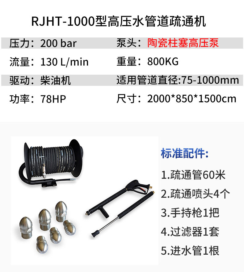 管道疏通機(jī)>1000型 78馬力柴油機(jī) 大型高壓管道疏通機(jī)